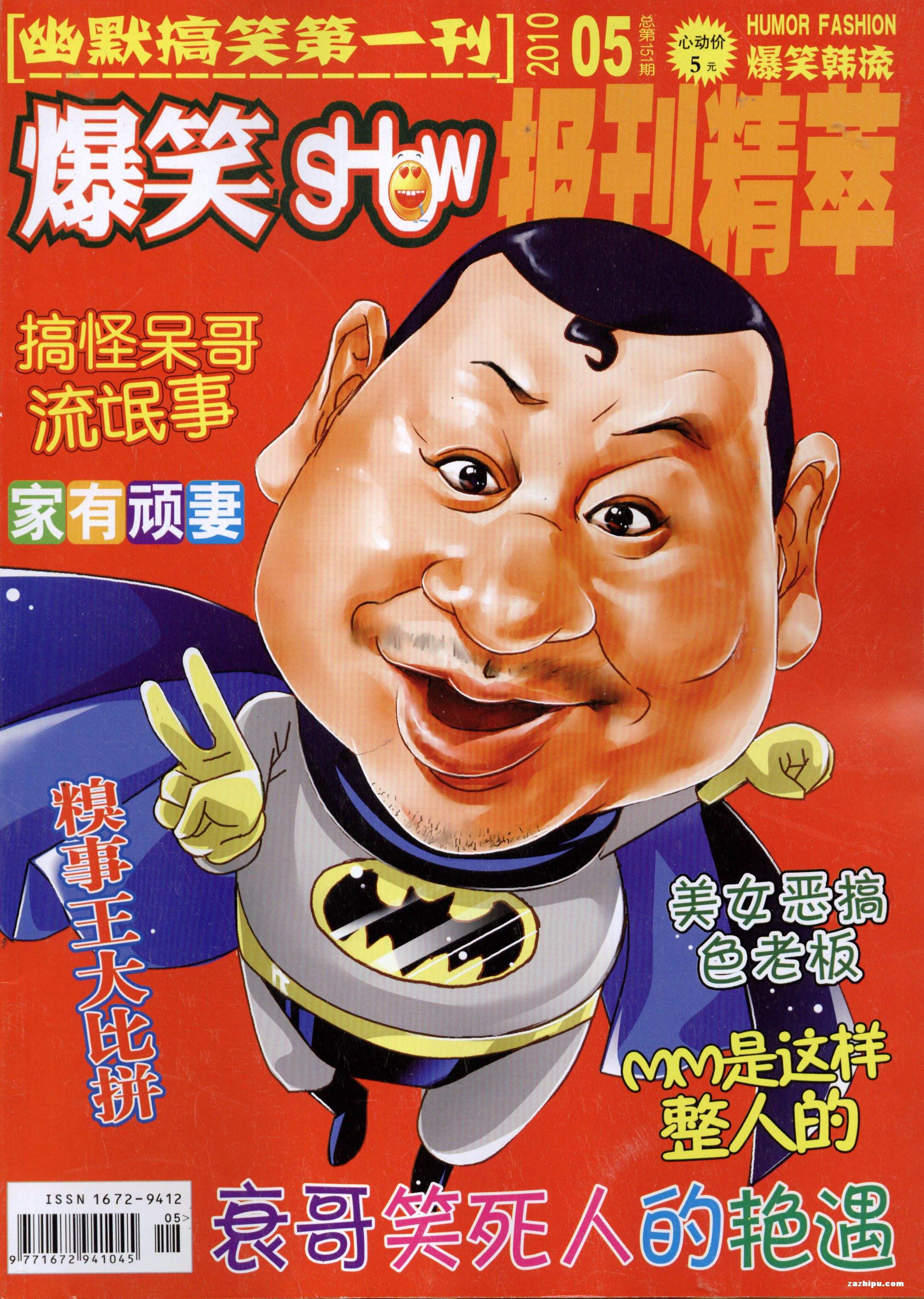 《爆笑SHOW》06年创刊,从创刊到现在共发了53期主要宣传词:幽默搞笑第一刊!看完本刊出现喷饭、直不起腰均属正常现象!简介:《爆笑SHOW》是一本彩色搞笑娱乐类原创杂志。《爆笑SHOW》以时尚、搞笑、新颖、幽默为宗旨,笑话新颖,故事让人喷饭。本刊专门刊登人气搞笑明星、名人的搞笑糗事、趣事,或大话式的调侃明星;日常生活中让人忍俊不禁、拍案叫绝的趣事、妙事;校园里发生的搞笑趣事、糗事、尴尬事。以时尚、搞笑、新颖、幽默为宗旨,笑话新颖,故事让人喷饭。全刊配有新颖、搞笑、让人喷饭的图片,内容搞笑、图片幽默、老少皆宜
