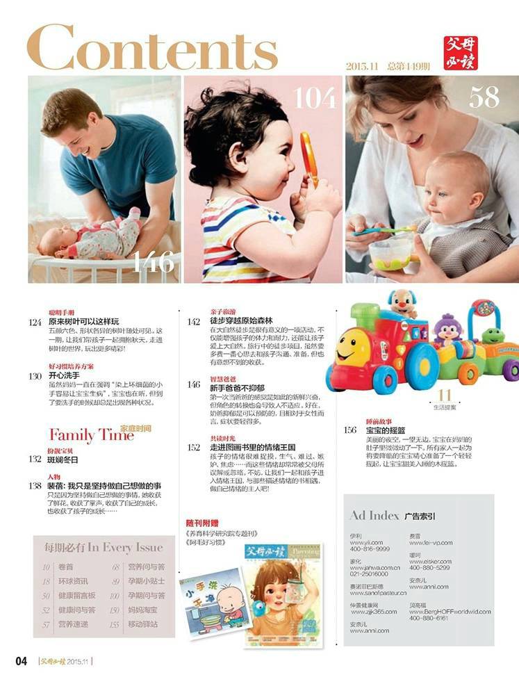 《父母必读》杂志是一本倡导智慧育儿生活、帮助父母享受快乐养育生活的高品质杂志,是三届国家期刊奖唯一育儿杂志获得者,中国育儿杂志的第一品牌,中国邮政发行畅销报刊,一本养育孩子必备刊物。