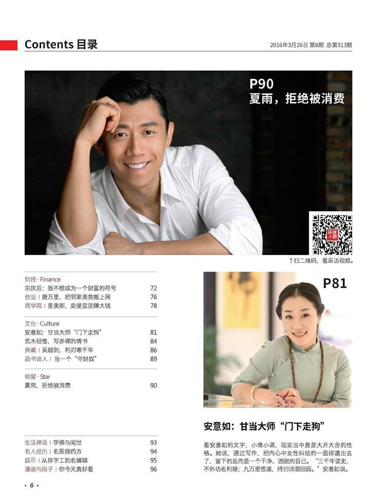 《环球人物》追求新闻时效的政经类杂志,以高端人物报道为特色,反应全球时事热点话题。
