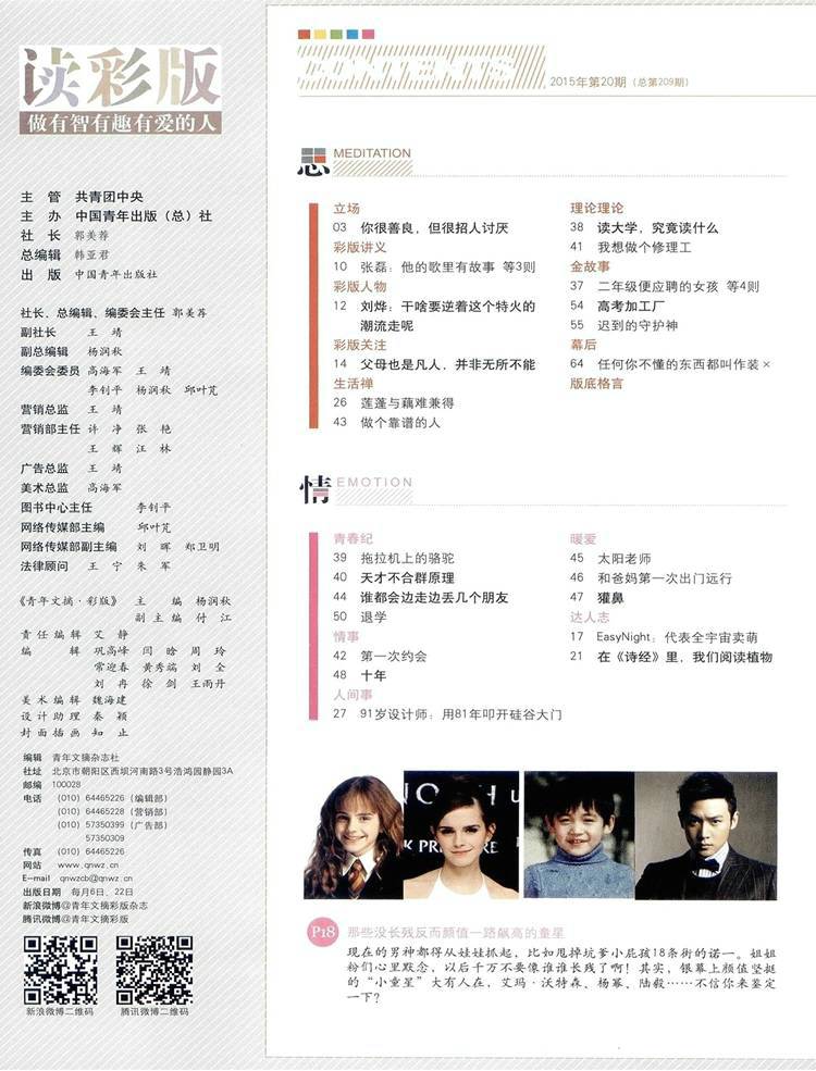 《青年文摘》由共青团中央主管、中国青年出版总社主办,创刊于1981年1月,自2000年起改为半月刊,是中国发行量最大的青年杂志,单期发行145-150万册。