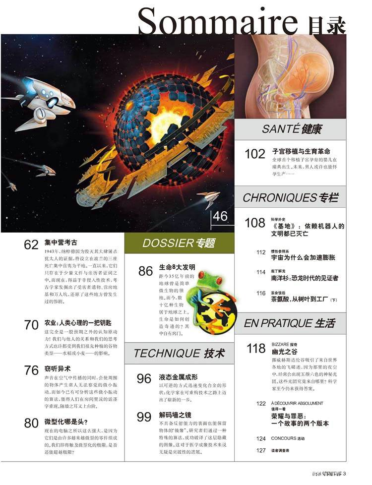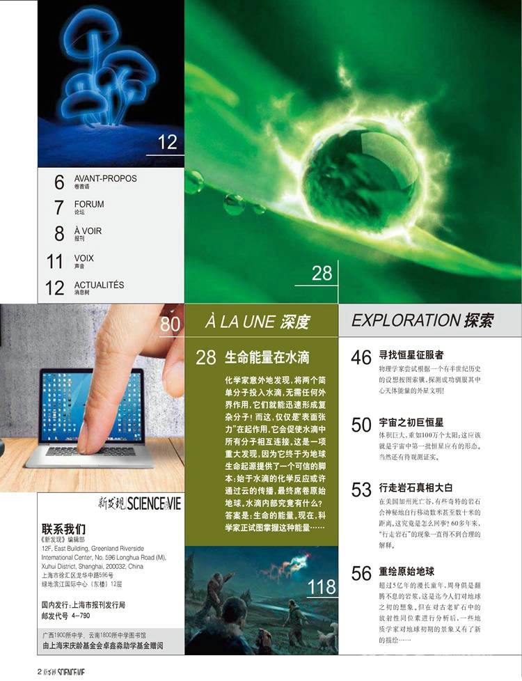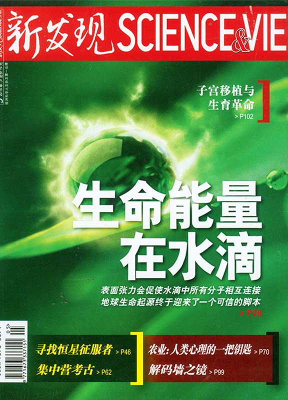 《新发现SCIENCE&VIE》 杂志是欧洲发行量及影响力最大的大众科学人文杂志,中文版以法国版为基础,在样式上保持和法国母版同样的水准,但是内容全面本土化,在选题上多提供和人类自身生存密切相关的内容。