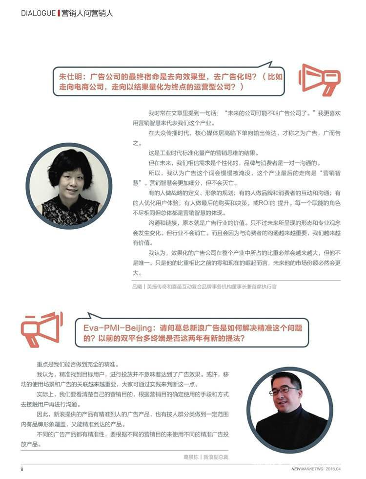 整合营销领域顶级企业和专家学者 冲击力:策划注意力强大的话题,结合活动,加强宣传,形成声势 新闻眼:强调第一手采访,全球采编资源布局,强调写作的现场感和客观性 创新感:内容新,角度新,风格新 时尚风:包装手法符合新兴读者群体的要求 先锋性:制造观念,引导潮流 专业性:营销专业方面的解析,为读者提供智慧的观察视角。